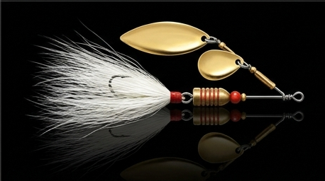 The bucktail spinner is the most versatile muskie and pike lure ever made — a spinning blade that creates flash and vibration, trailed by a deer-hair or synthetic skirt that pulses on every revolution. In stained or murky water where visibility is low, the bucktail's vibration is what gets found. Retrieve steady and fast enough to keep the blade turning. The figure-8 at boatside is mandatory — more muskie strikes happen in the last 3 feet than anywhere else on the cast.